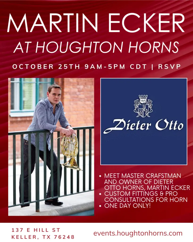 Join us for a special one-day event with Martin Ecker, master craftsman and owner of Dieter Otto Horns — one of the world’s most respected names in horn making. Don’t miss this unique opportunity to meet Martin in person and experience the artistry and precision that define his custom instruments.